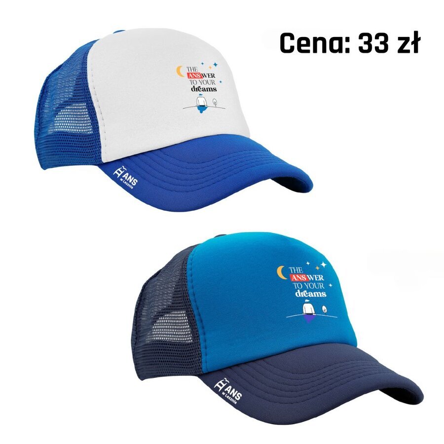 • Czapki w wersji biało-niebieskiej oraz niebieskiej - cena: 33 zł